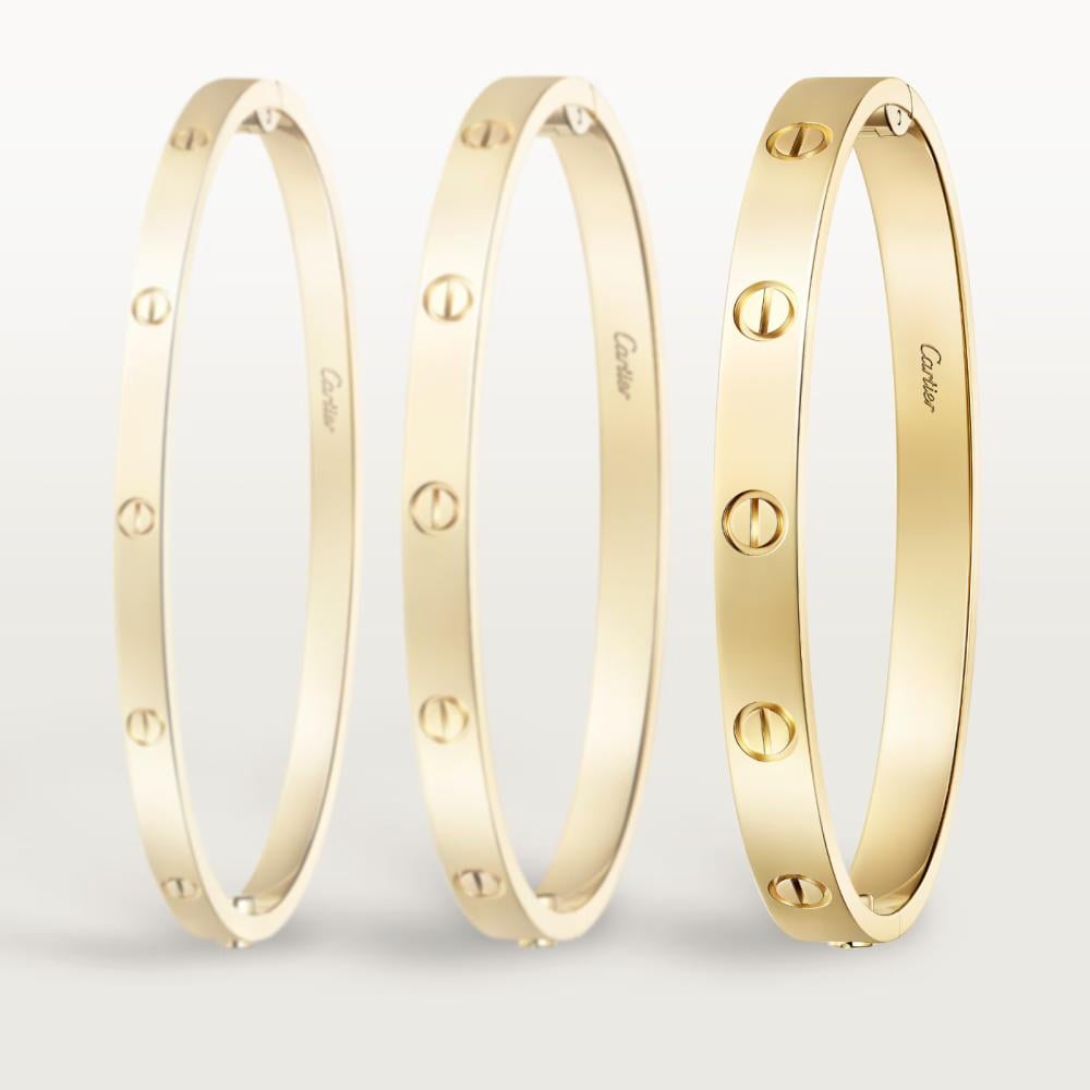 سوار LOVE، موديل الحجم المتوسّط، مصنوع من الذهب الأصفر 750/1000، نظام الإغلاق مزوَّد ببرغي عملي ومفصل.